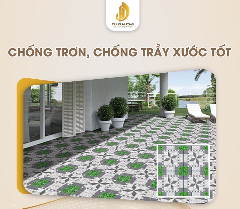 Gạch lát sân chống trơn là loại gạch được thiết kế đặc biệt để sử dụng cho các khu vực ngoài trời như sân vườn, sân nhà, sân thượng, lối đi công cộng. Điểm nổi bật của loại gạch này là bề mặt có độ ma sát cao, giúp giảm thiểu nguy cơ trơn trượt, đặc biệt trong điều kiện thời tiết ẩm ướt hoặc mưa nhiều.